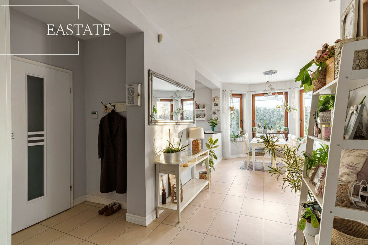 Dom otacza starannie zaprojektowana przestrzeń zielona, nadająca całej posesji wyjątkowo kameralny i zaciszny charakter. Duży taras, usytuowany z tyłu budynku, doskonale sprawdzi się zarówno podczas spotkań towarzyskich, jak i w codziennym relaksie - to idealne miejsce do podziwiania zachodów słońca.
